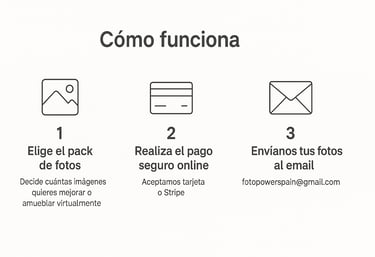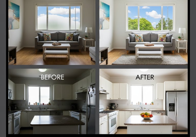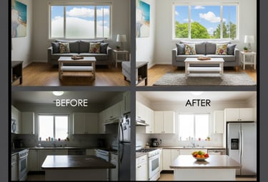 Ofrecemos edición de fotos inmobiliarias, corrección de luz, eliminación de imperfecciones y home staging virtual.