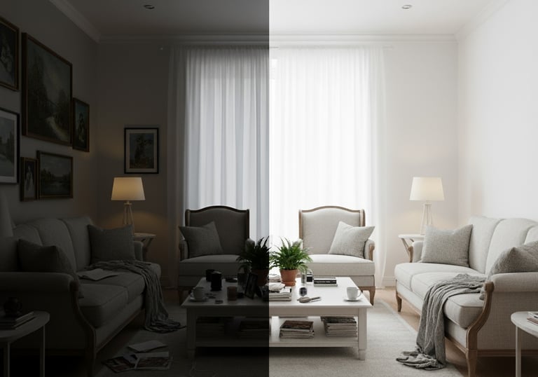 Eliminamos imperfecciones de tus fotos inmobiliarias, asegurando un acabado profesional que resalta lo mejor de cada espacio.